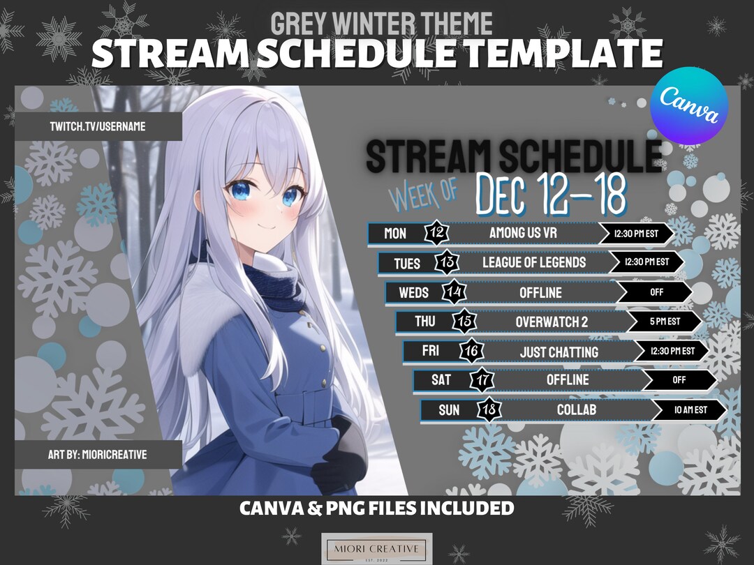 Winter Vtuber Schedule Template Grey Vtuber Schedule Canva Editable