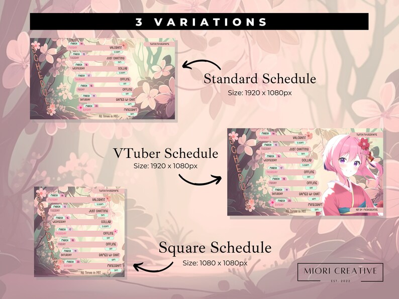 2 pack Floral Vtuber Schedule Template Pastel Vtubers Stream Schedule