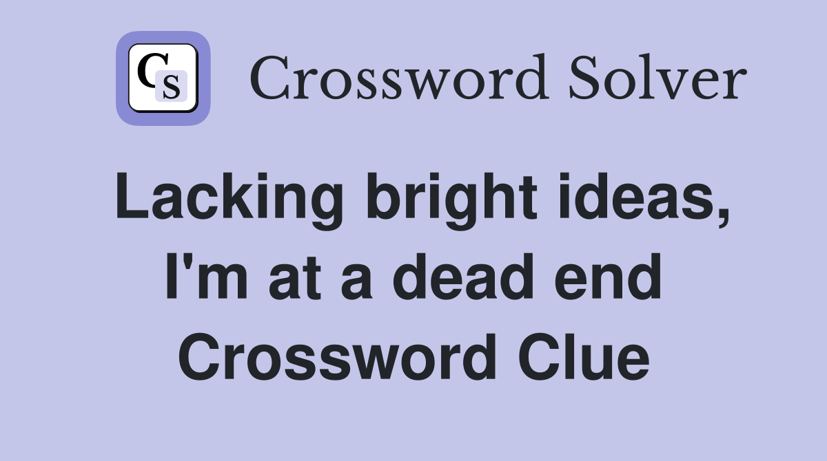 Lacking bright ideas I #39 m at a dead end Crossword Clue Answers