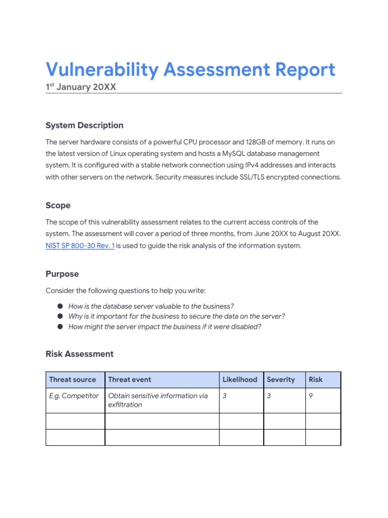 Must Have Vulnerability Assessment Report Templates with Samples and