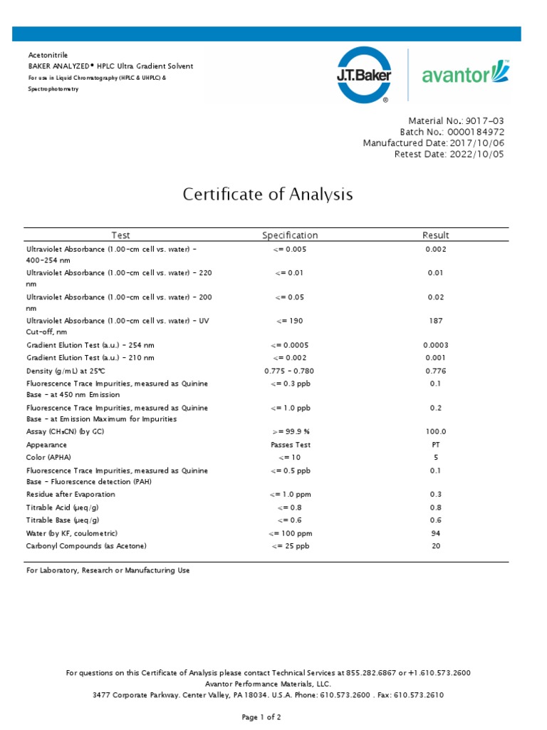 Certificate of Analysis PDF High Performance Liquid Chromatography