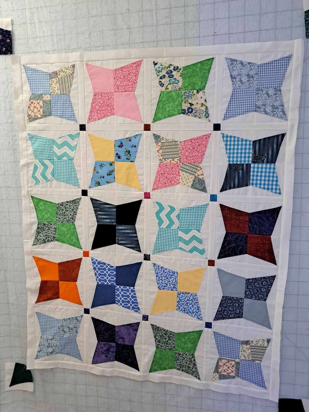 The periwinkle quilt using the wacky web template by MSQC