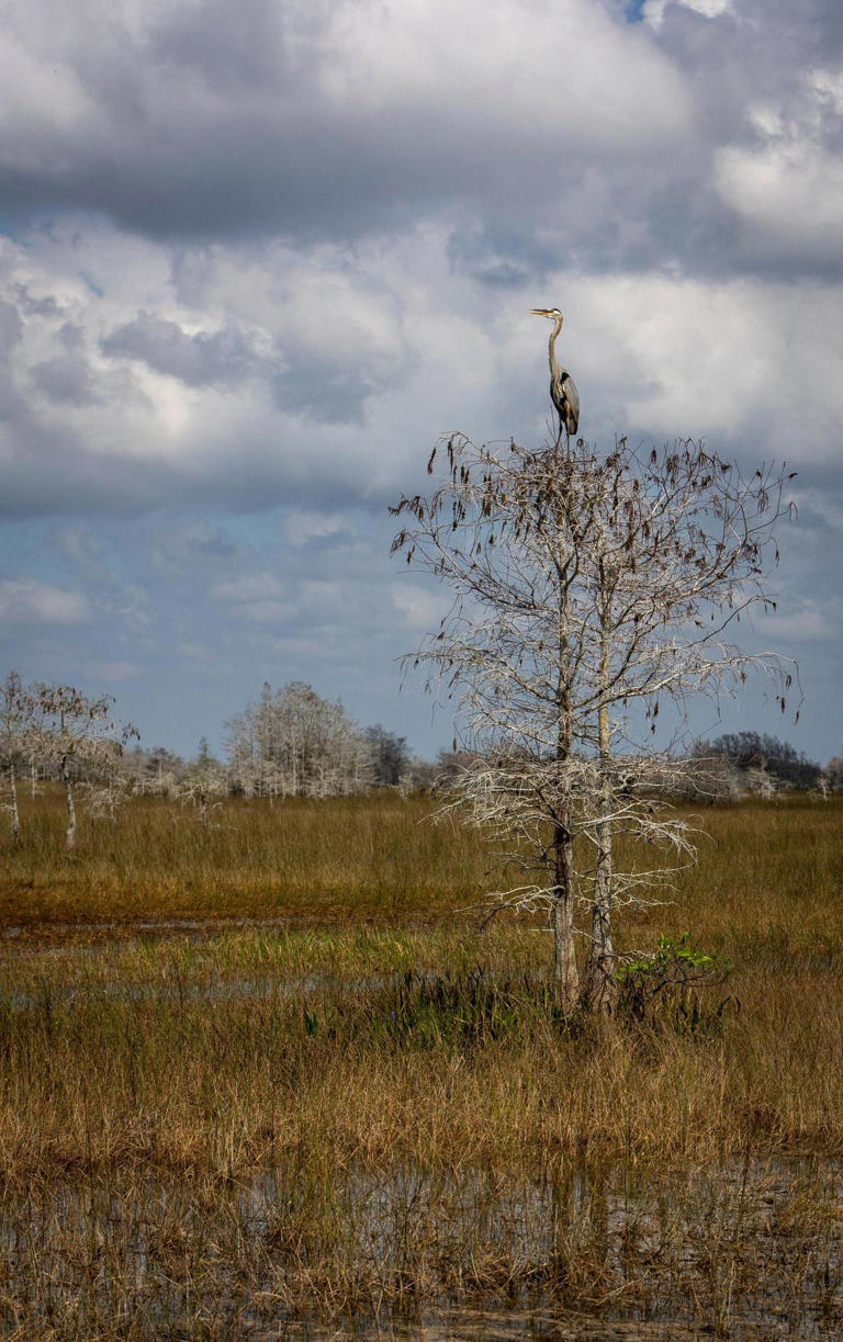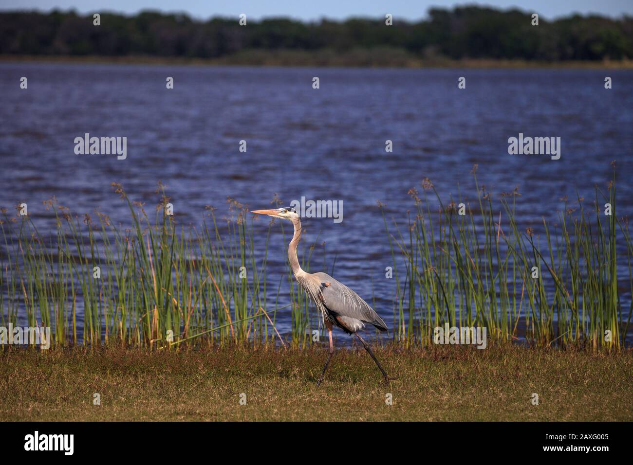 Large Wading Great blue heron Ardea herodias wading bird at Myakka