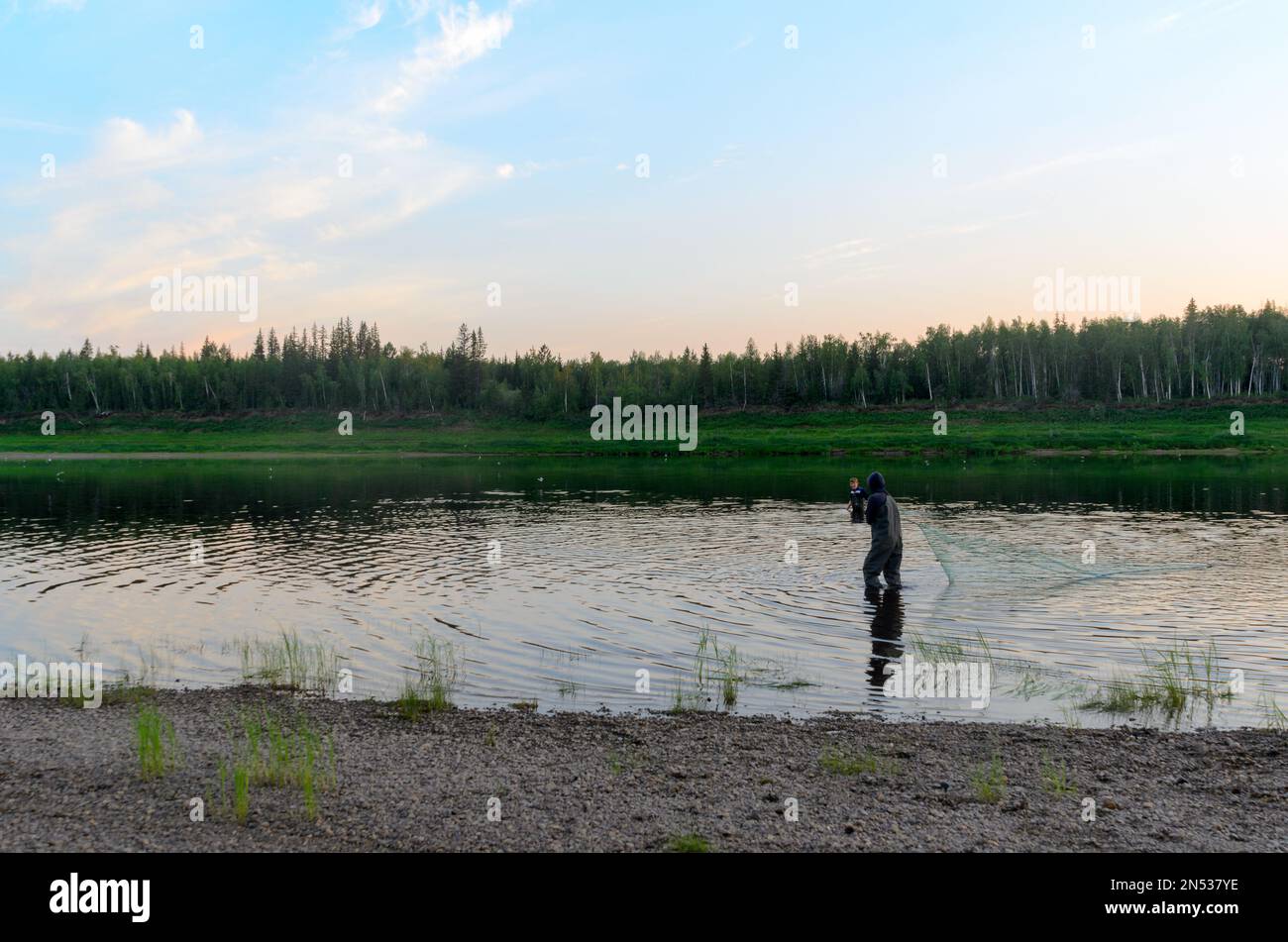 Great Blue Heron wading on river channel (Ardea herodias Stock Photo