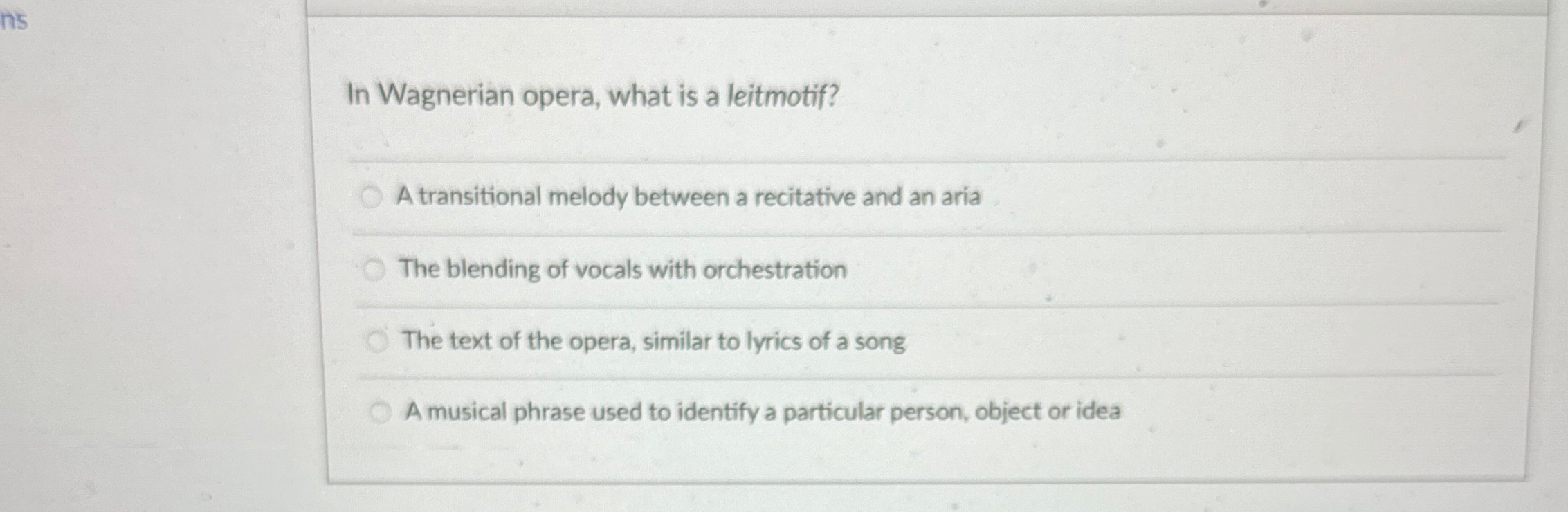Solved In Wagnerian opera what is a leitmotif?A Chegg com