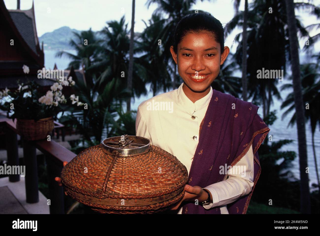 Beautiful smiling young Thai waitress Chiang Mai Thailand Stock Photo