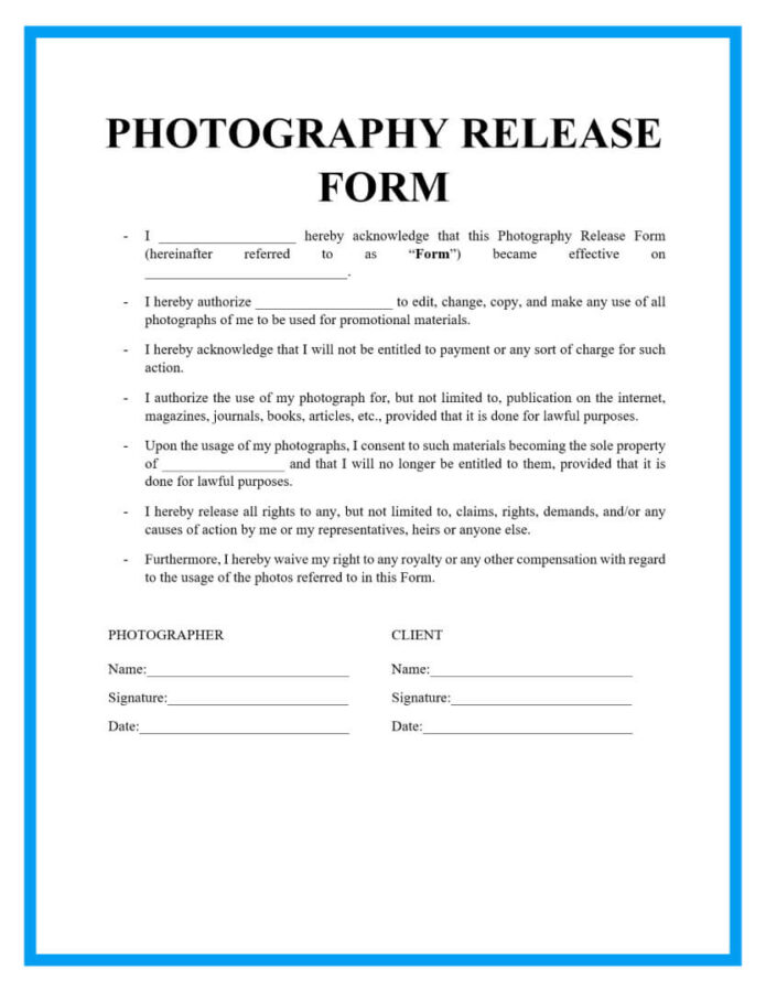 Photo Release Form Template Free