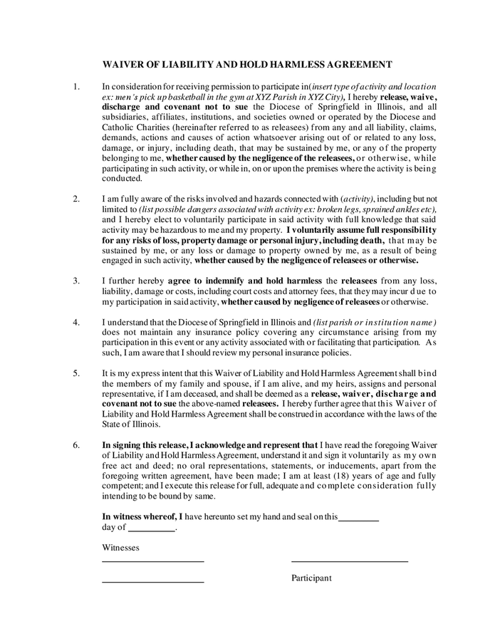Waiver Of Liability And Hold Harmless Agreement Template udlvirtual