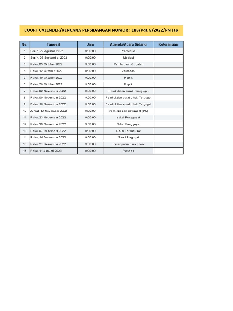 Daftar Perkara Yang Belum Upload E Doc Court Calender PDF