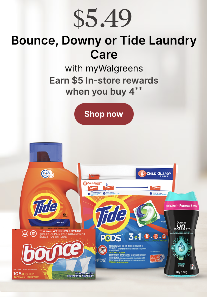 Bounce Downy or Tide Laundry Products as low as $2 97 each at