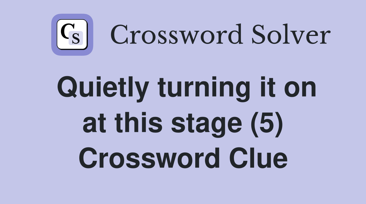 Quietly turning it on at this stage (5) Crossword Clue Answers