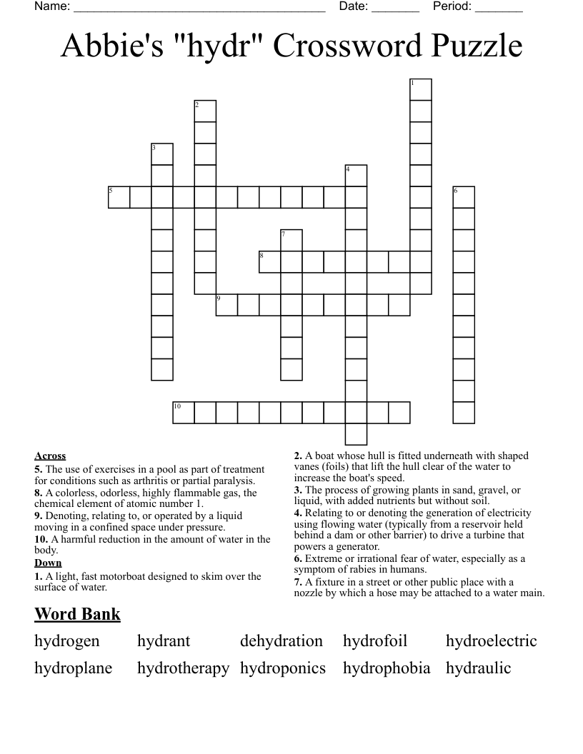 Abbie #39 s quot hydr quot Crossword Puzzle WordMint