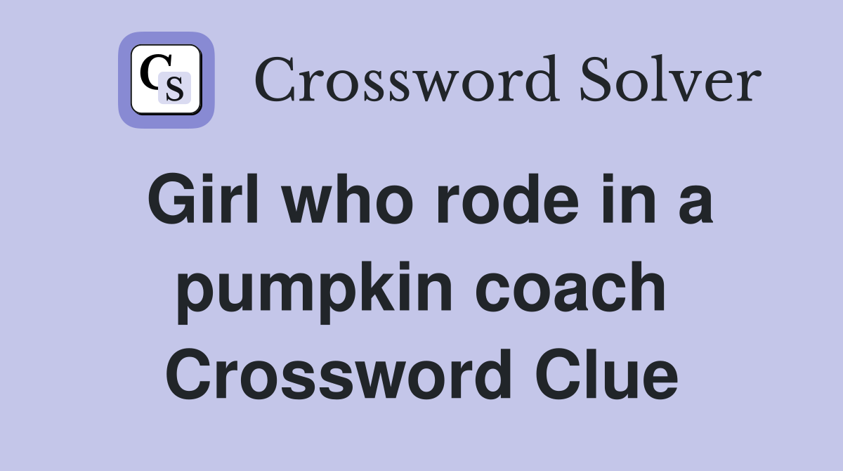Girl who rode in a pumpkin coach Crossword Clue Answers Crossword