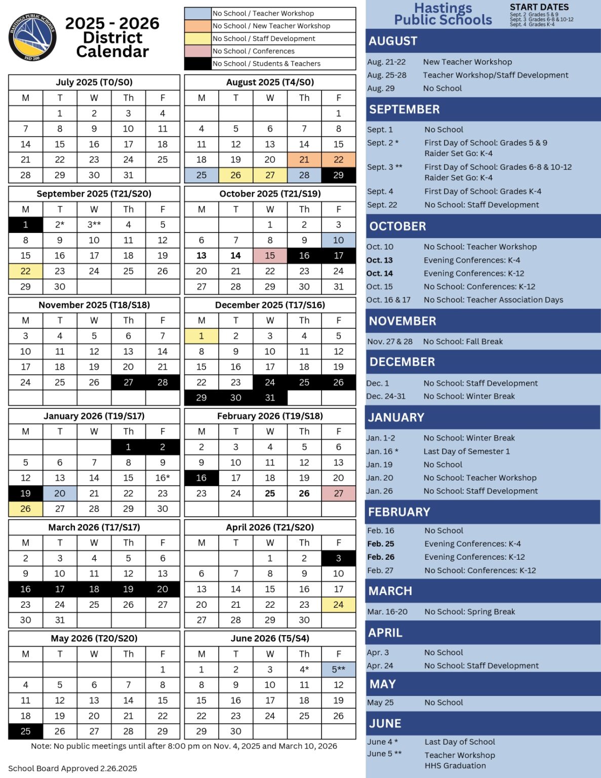 Hastings Public Schools MN Calendar 25 26 Revised PDF EduCounty