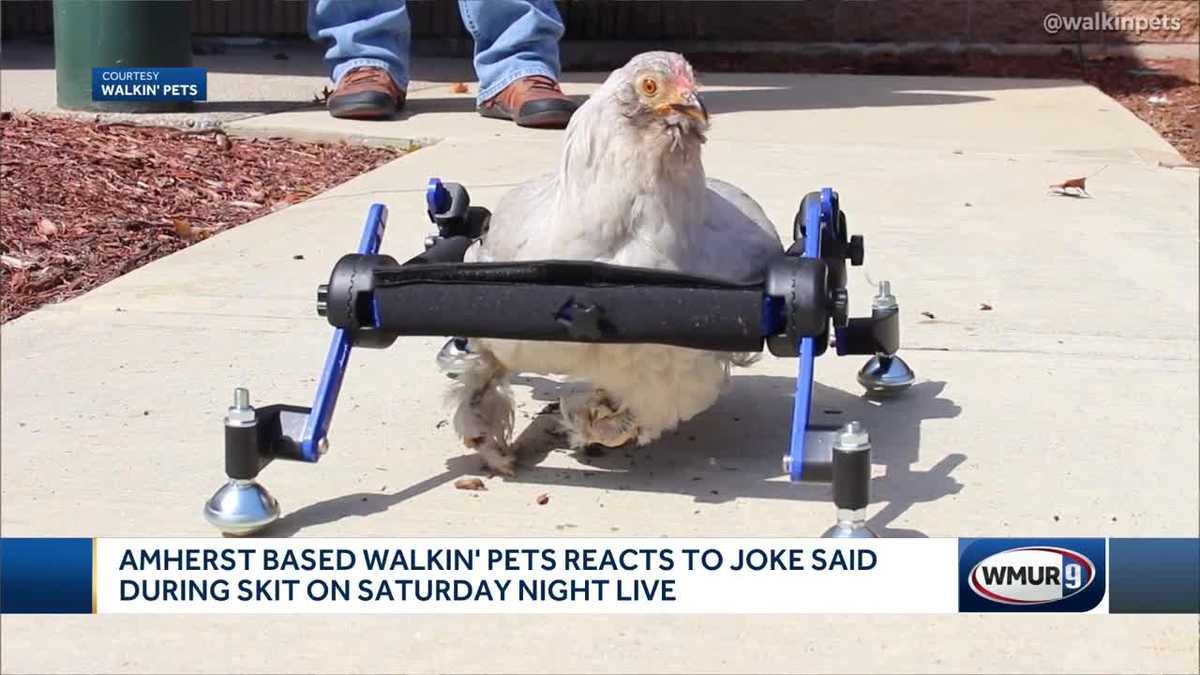 Amherst based Walkin #39 Pets reacts to joke about chicken in wheelchair