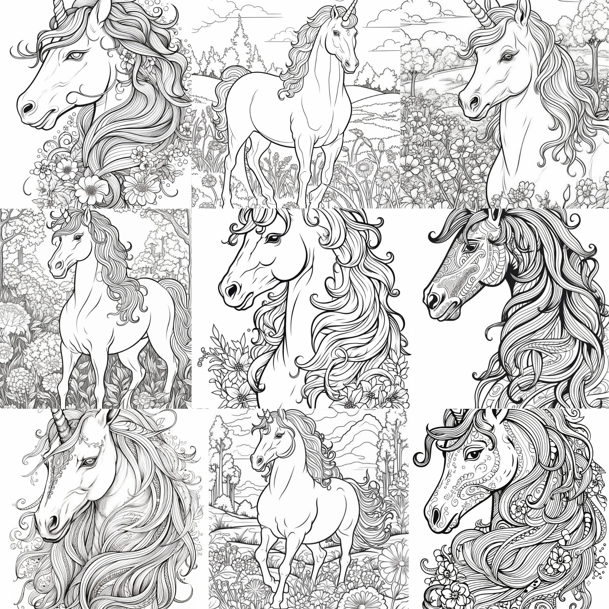 149 Unicorn Coloring Pages to Use or Sell Wall Art Templates Canva