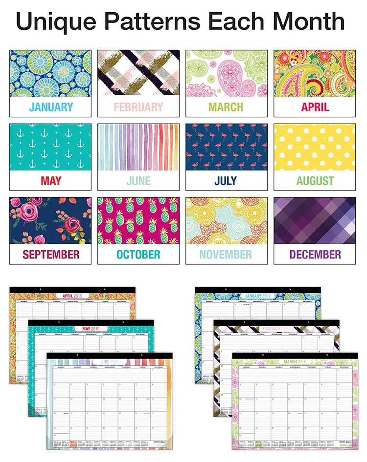 Large Personalized Wall Calendar With FREE Wood Hanger 12 Months 24