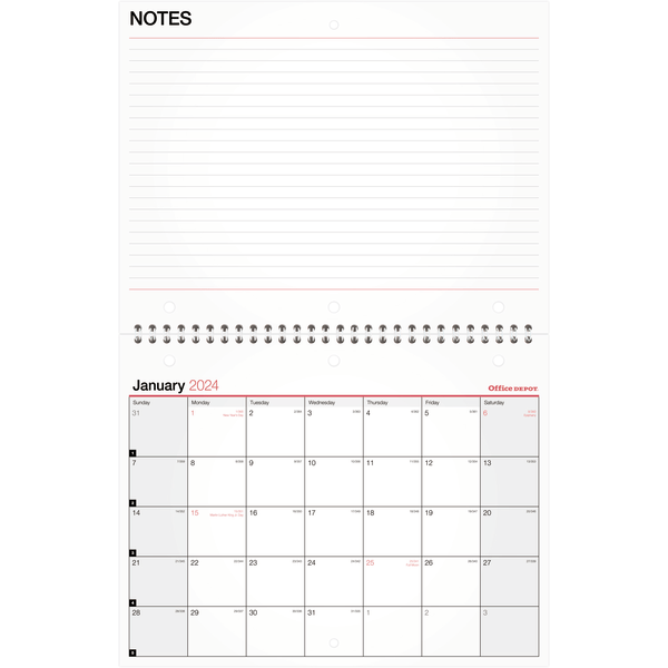 Office Depot Brand Monthly Wall Calendar 11 x 8 18 BlackRed January to