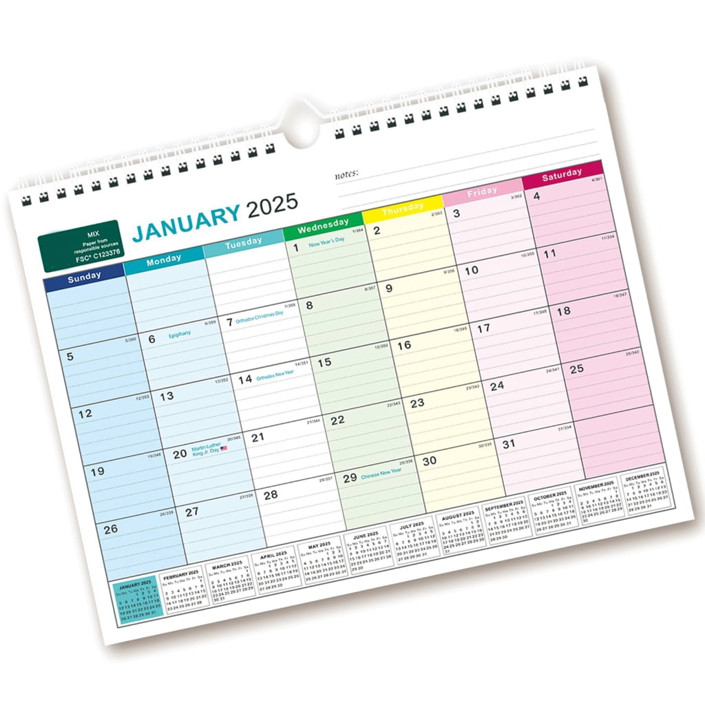 Necvior Hanging Calendar 2025 Wall Calendar Weekly Planner English
