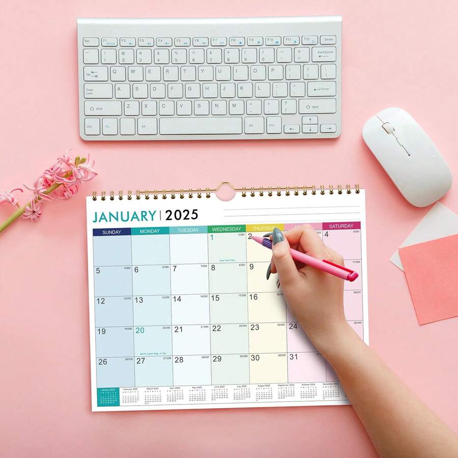 Up to 65% Off 2025 Easy Blue Wall Calendar 12 Months Double Coil with