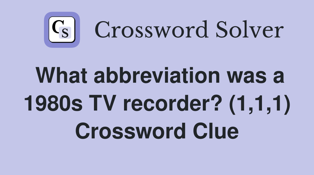 What abbreviation was a 1980s TV recorder? (1 1 1) Crossword Clue