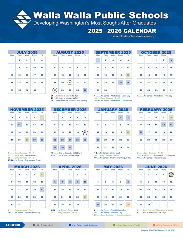 Walla Walla Public Schools Calendar 25 26 Revised PDF EduCounty