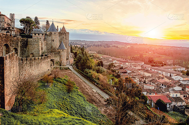 卡卡颂游戏。法国。美丽的日落风景在法国著名的城市。