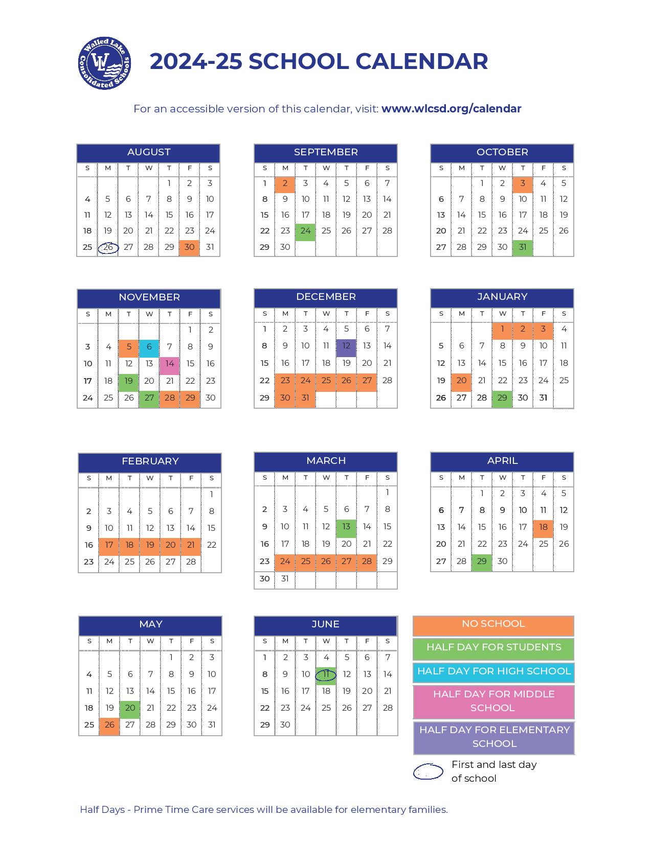 2024 2025 Walled Lake Consolidated Schools Calendar Metro Parent