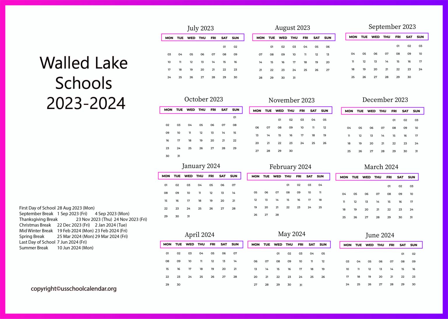 Walled Lake Schools Calendar 2024 2025 in PDF Download Now School