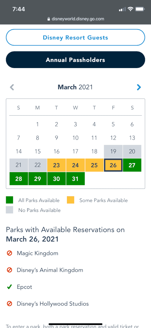 Disney World Theme Park Reservations completely booked through April