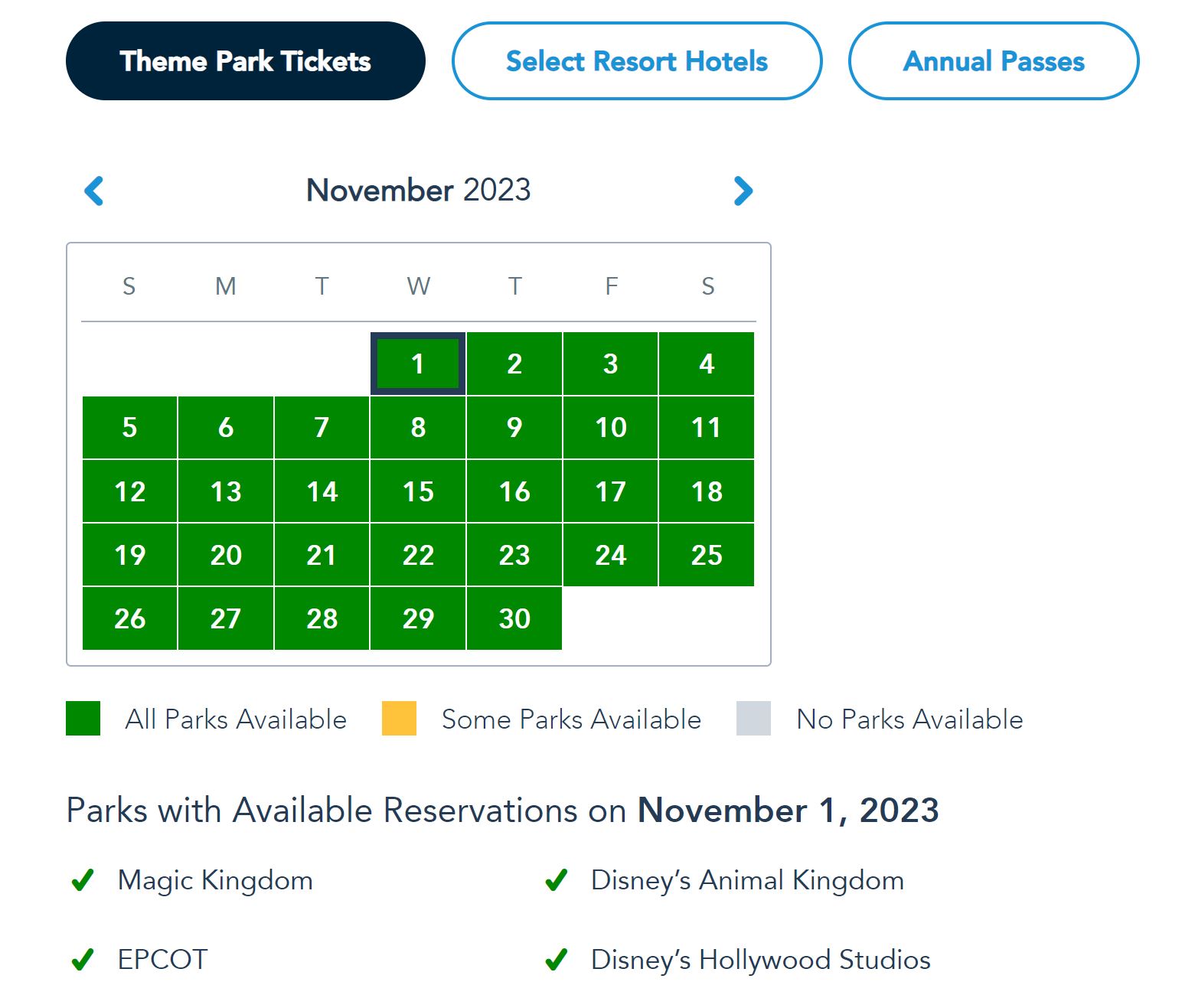Walt Disney World Availability Calendar