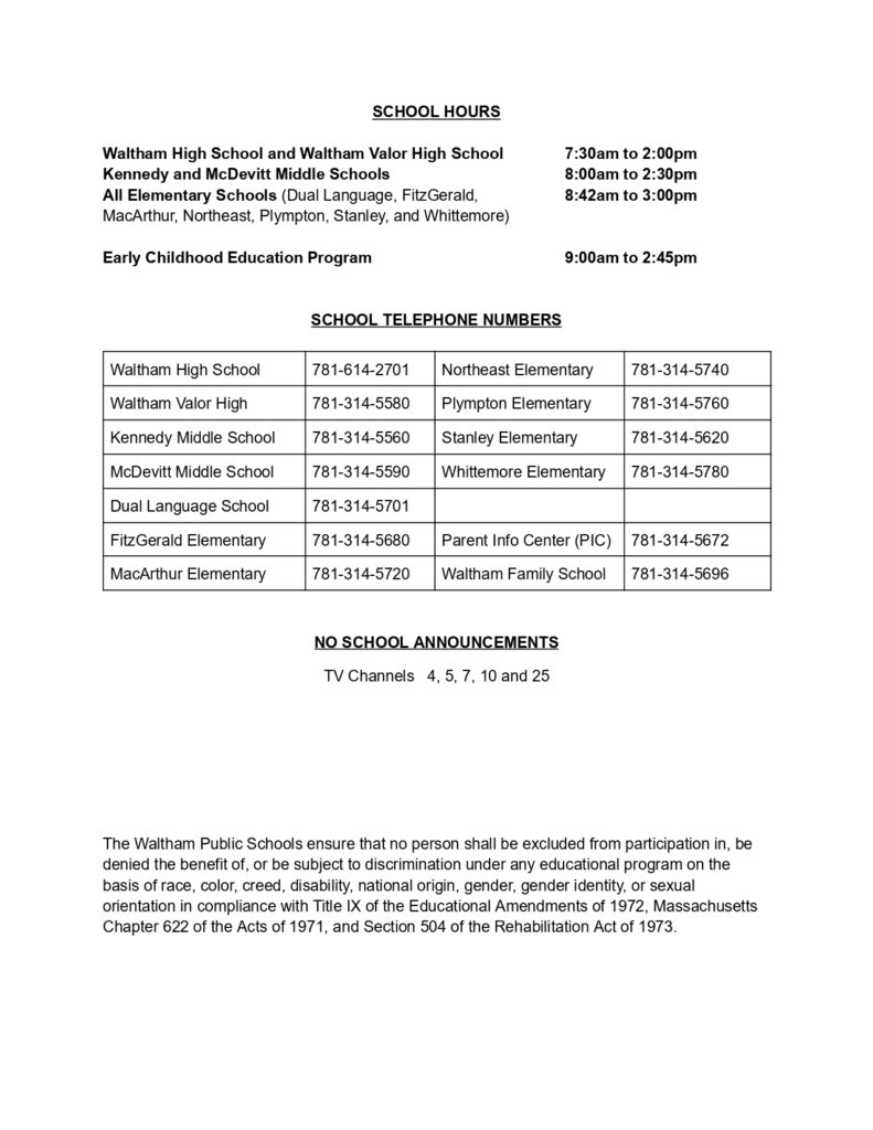 Waltham Public Schools Calendar prntbl concejomunicipaldechinu gov co