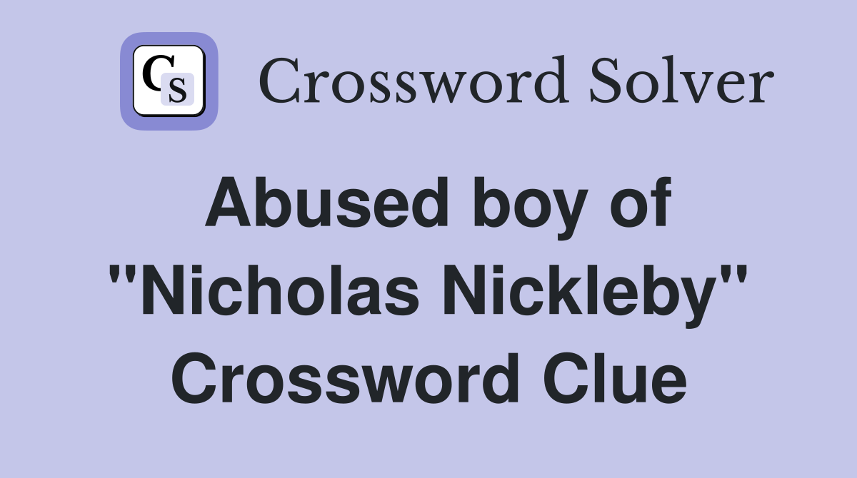 Abused boy of quot Nicholas Nickleby quot Crossword Clue Answers Crossword