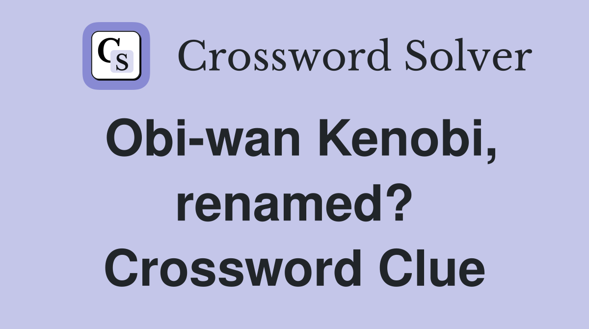 Obi wan Kenobi renamed? Crossword Clue Answers Crossword Solver