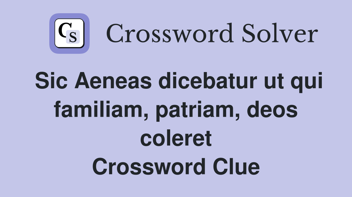 Sic Aeneas dicebatur ut qui familiam patriam deos coleret Crossword