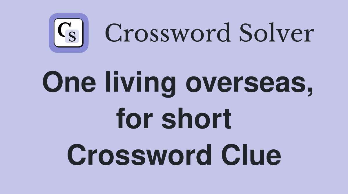 One living overseas for short Crossword Clue Answers Crossword Solver