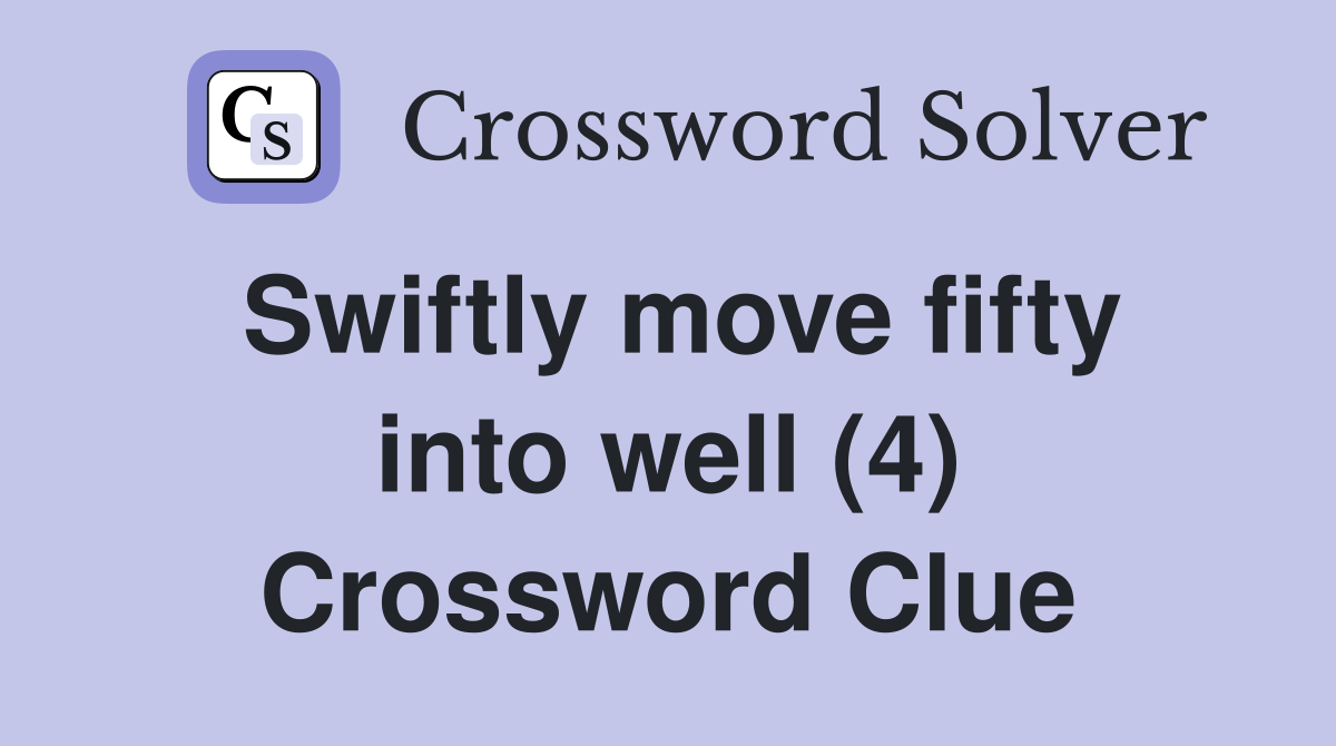 Swiftly move fifty into well (4) Crossword Clue Answers Crossword