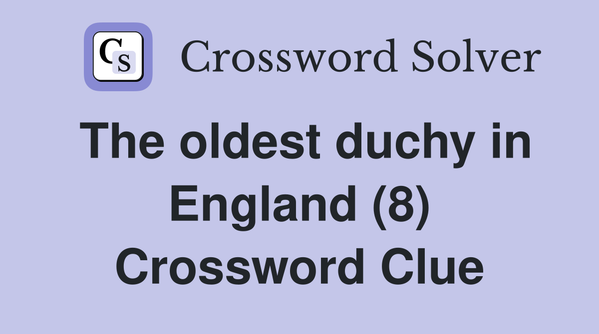 The oldest duchy in England (8) Crossword Clue Answers Crossword Solver