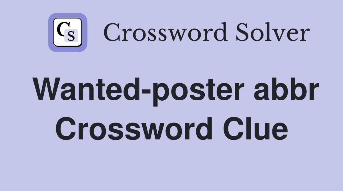 Wanted poster abbr Crossword Clue Answers Crossword Solver