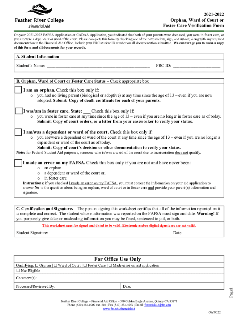 Fillable Online 2023 24 Orphan/Ward of the Court/Foster Care