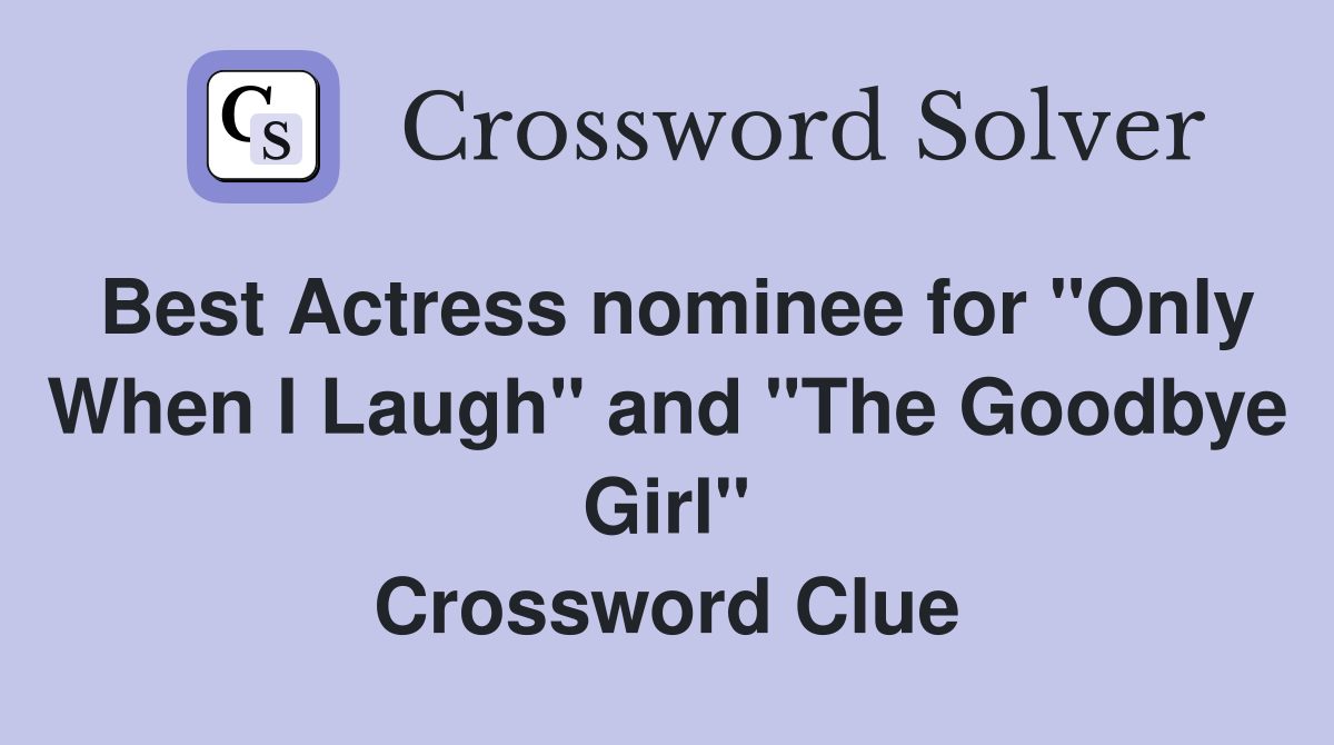 Best Actress nominee for quot Only When I Laugh quot and quot The Goodbye Girl