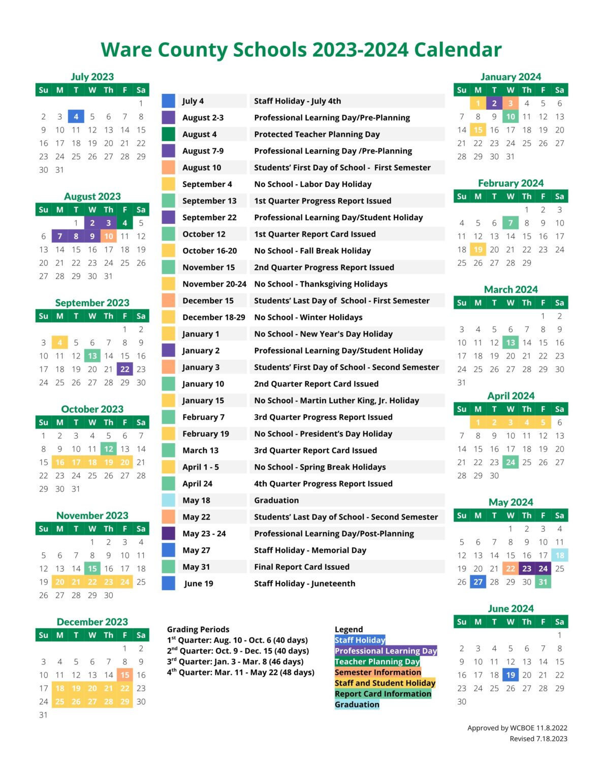 WCS Announces 2023 2024 Calendar Ware County Schools