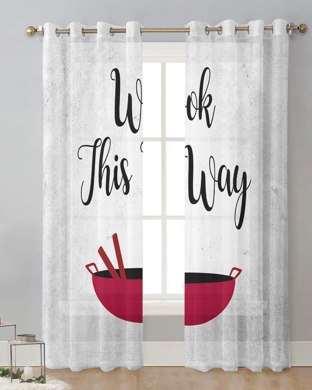 Kitchen Daisy Chef Gourmet Pot Kitchen Ware Voile Hanging Curtain
