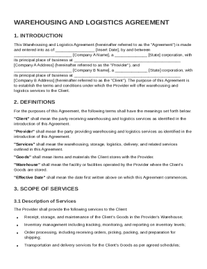 Warehousing and Logistics Agreement Template Form Fill Online