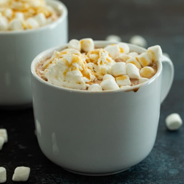 Salted Caramel Hot Cocoa with Salted Caramel Marshmallows Mozie