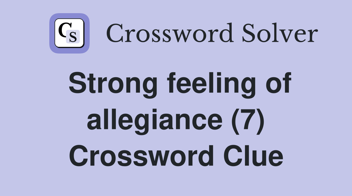 Strong feeling of allegiance (7) Crossword Clue Answers Crossword
