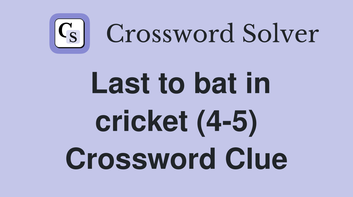 Last to bat in cricket (4 5) Crossword Clue Answers Crossword Solver