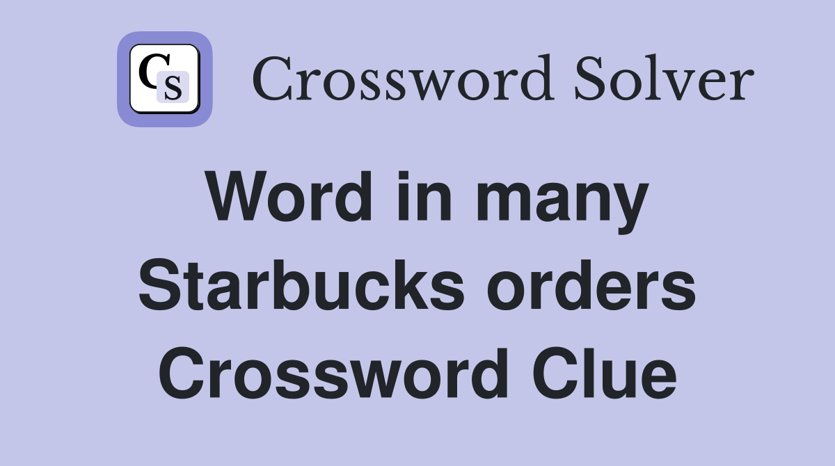 Word in many Starbucks orders Crossword Clue Answers Crossword Solver