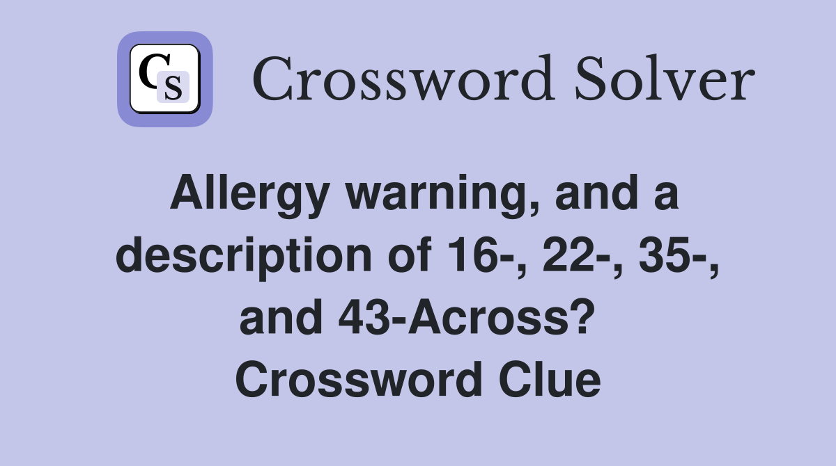 Allergy warning and a description of 16 22 35 and 43 Across