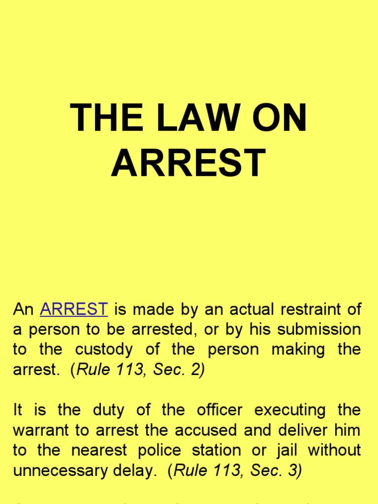 Lesson 3 LAW On ARREST Rule 113 of Rules of Court PDF Arrest